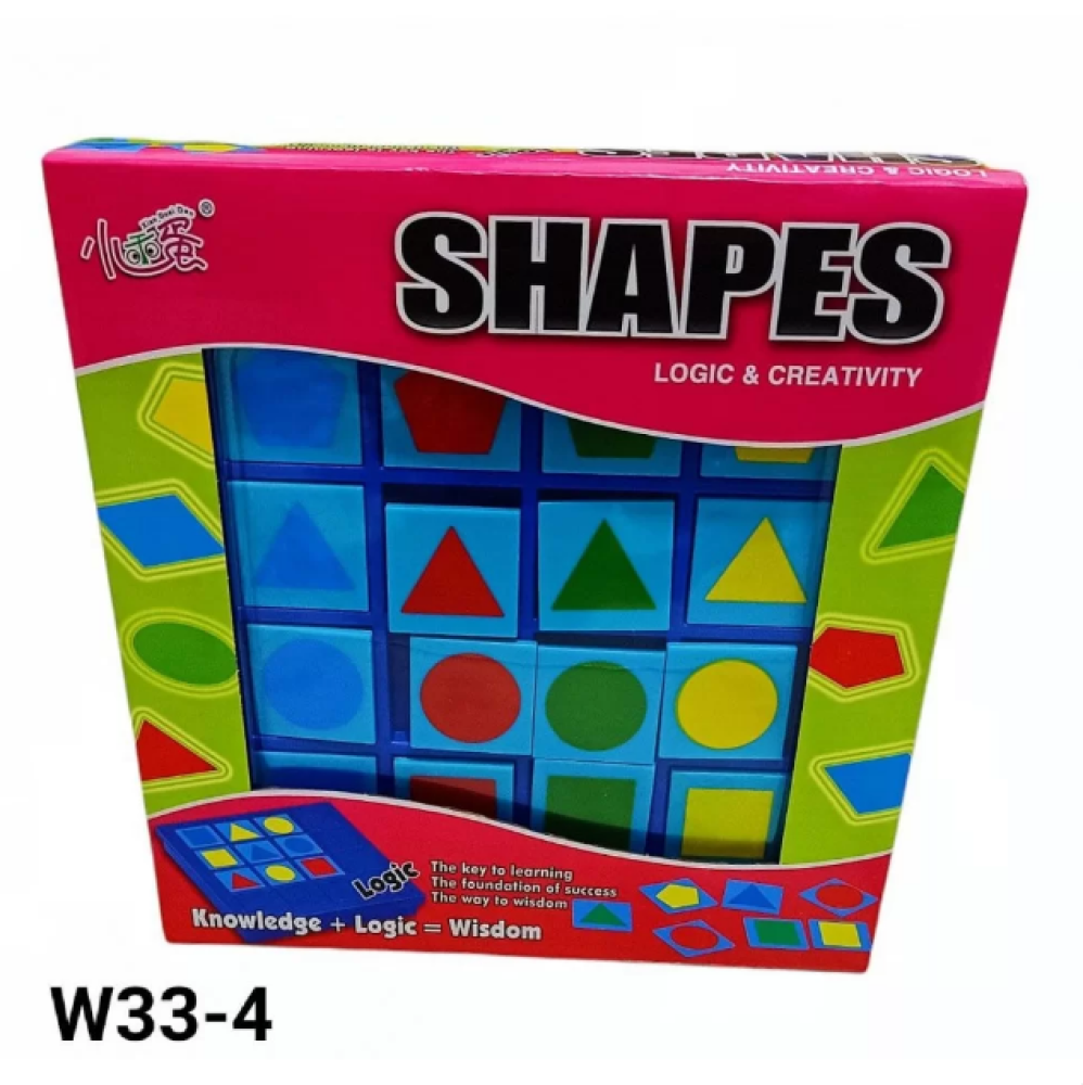 اللعبة مكونة من بورد بها ١٦ خانة وقطع أشكال، ومعاها ٣ كتالوجات على 120 تحدي: