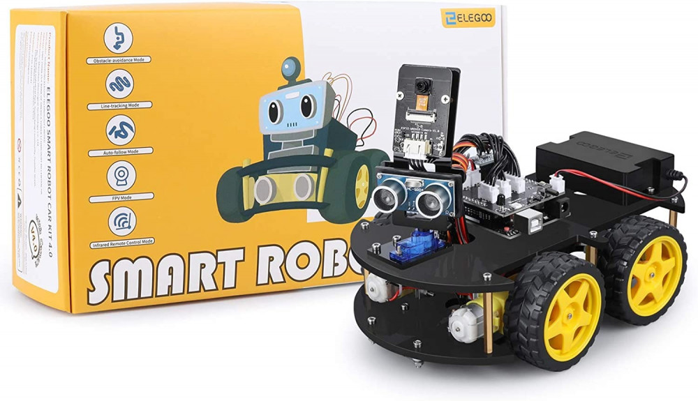 ELEGOO Smart Robot Car: An educational STEM kit for beginners (kids) to get hands-on experience in programming, electronics assembling, and robotics knowledge. It is an integration solution for robotics learning and is made for education.