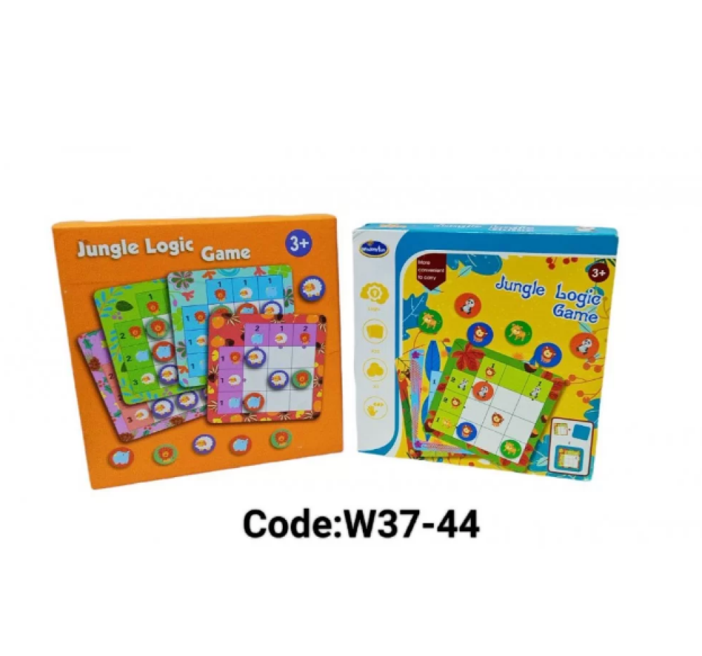 تتكون من كروت بمستويات متدرجة الصعوبة + كتيب للحل + قطع خشبية دائرية مرسوم عليها حيوانات 🐶🐱🐰.
