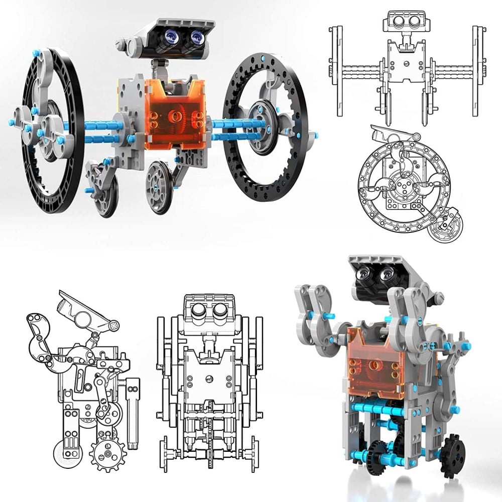 【Coolest 12 in 1 Robots Toy Sets】: Can be built into 12 models: turtle, walker, quad, row, beetle, puppy, buggy, crab, slither, roly-poly, zombie, and surf. starting from entry level for younger children to advanced level for the older children to challenge their manipulative skills.